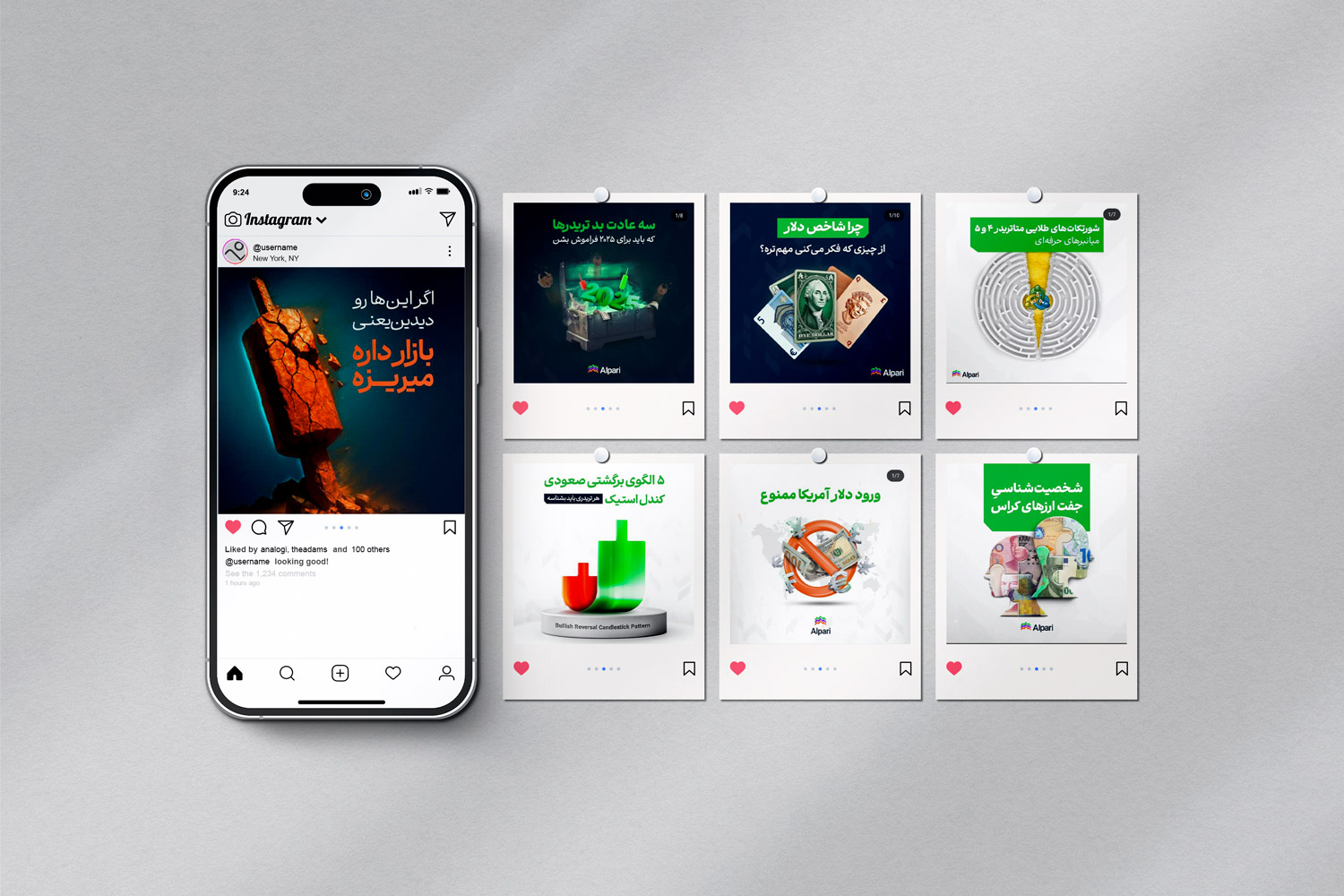 The design work for Alpari focused on creating compelling visual narratives around key financial concepts, market trends, and trading insights. Instagram posts and stories were designed with a modern, clean aesthetic, maintaining alignment with Alpari’s brand while introducing dynamic elements for heightened engagement. Subtle adjustments were made to their visual identity to optimize clarity and visual appeal on digital platforms, ensuring that each piece of content communicated trust, expertise, and innovation in the financial space.